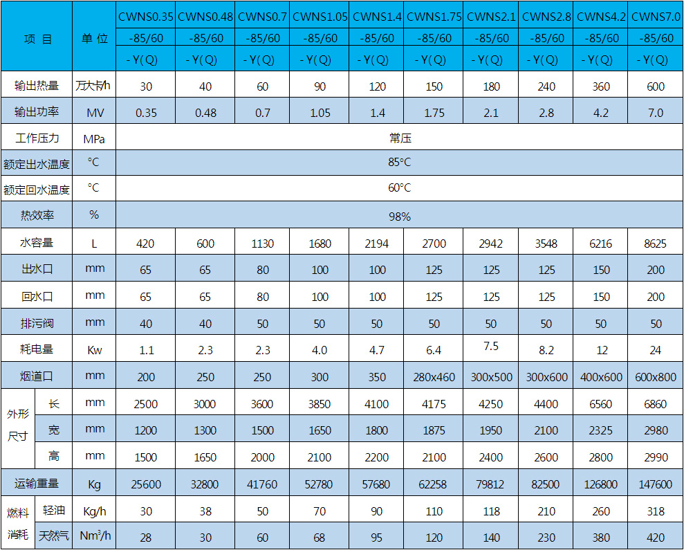 CWNS低氮冷凝燃气热水锅炉参数表